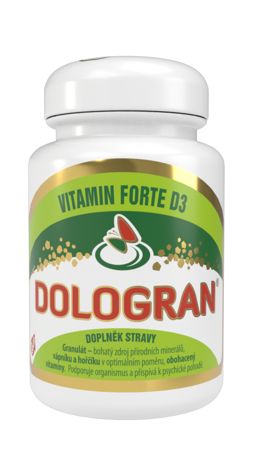 Doplněk stravy DOLOGRAN Vitamin FORTE D3 obsahuje vápník a hořčík z přírodních zdrojů z Dolomitu v optimálním poměru, který zajišťuje dobré využití v lidském těle. Produkt je navíc obohacen o vitamín D3, který je důležitý pro vstřebávání vápníku v těle. Dále obsahuje vitamíny B1, B6, E, Betakaroten a Acerolu (zdroj přírodního vitamínu C) pro podporu a normální funkci imunitního sytému.